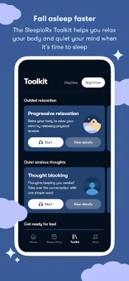 Razvijen od strane vodećih stručnjaka za san, SleepioRx vas vodi na putu ka razumevanju i prevazilaženju insomnije. Program vam omogućava da steknete dublje uvide u to kako vaše misli, brige i svakodnevno ponašanje utiču na kvalitet sna. Naučićete proverene strategije koje će vam pomoći da brže zaspite, duže ostanete u snu i probudite se osećajući se istinski odmorno. Sve to postiže se prirodnim putem, bez potrebe za farmakološkim intervencijama, pružajući personalizovani pristup koji se prilagođava vašim jedinstvenim izazovima i napretku.