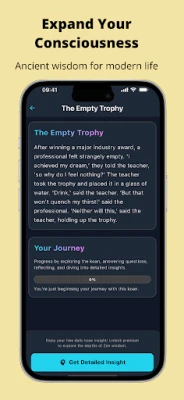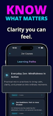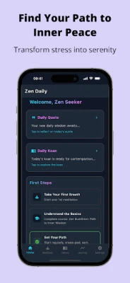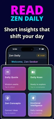 Pored sržne prakse, Zen Daily obogaćuje vaš život nizom podržavajućih alata. Otkrijte vođene vežbe svesnosti za ublažavanje stresa i poboljšanje fokusa, idealne za kratke pauze tokom užurbanog dana. Produbite svoje razumevanje kroz biblioteku znanja koja sadrži tradicionalne zen koane, članke o svesnosti i filozofske uvide primenljive u svakodnevnom životu. Aplikacija vam takođe pomaže da pratite svoj napredak u meditaciji, podstiče stvaranje dobrih navika i nudi personalizovane uvide, bez ikakvog pritiska. Za one koji žele da istraže još dublje, dostupni su prošireni sadržaji i napredne alatke za još potpunije putovanje ka unutrašnjem miru.